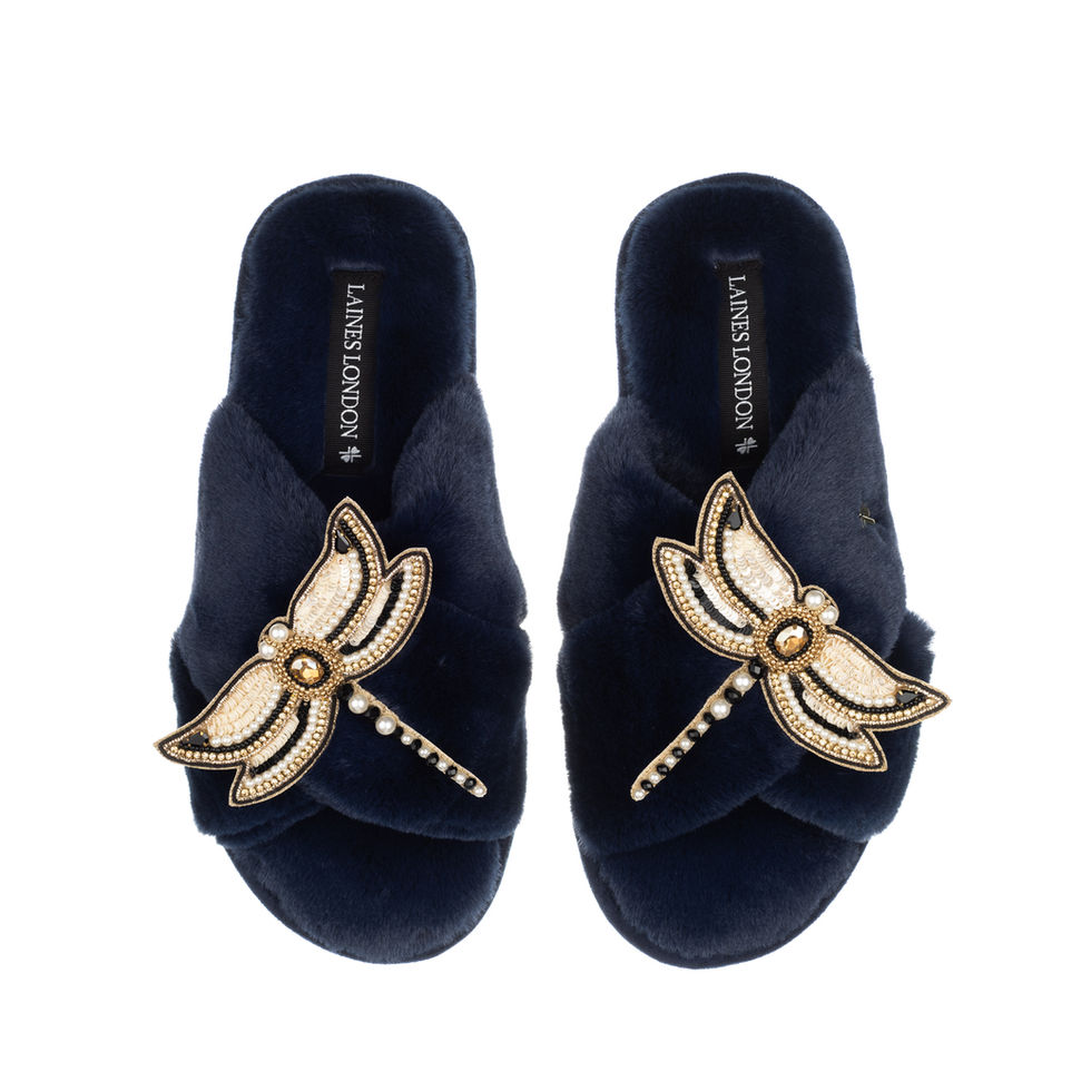 Classic Laines Slippers With Double Dragonfly Brooches (SLIGHT FAULT)