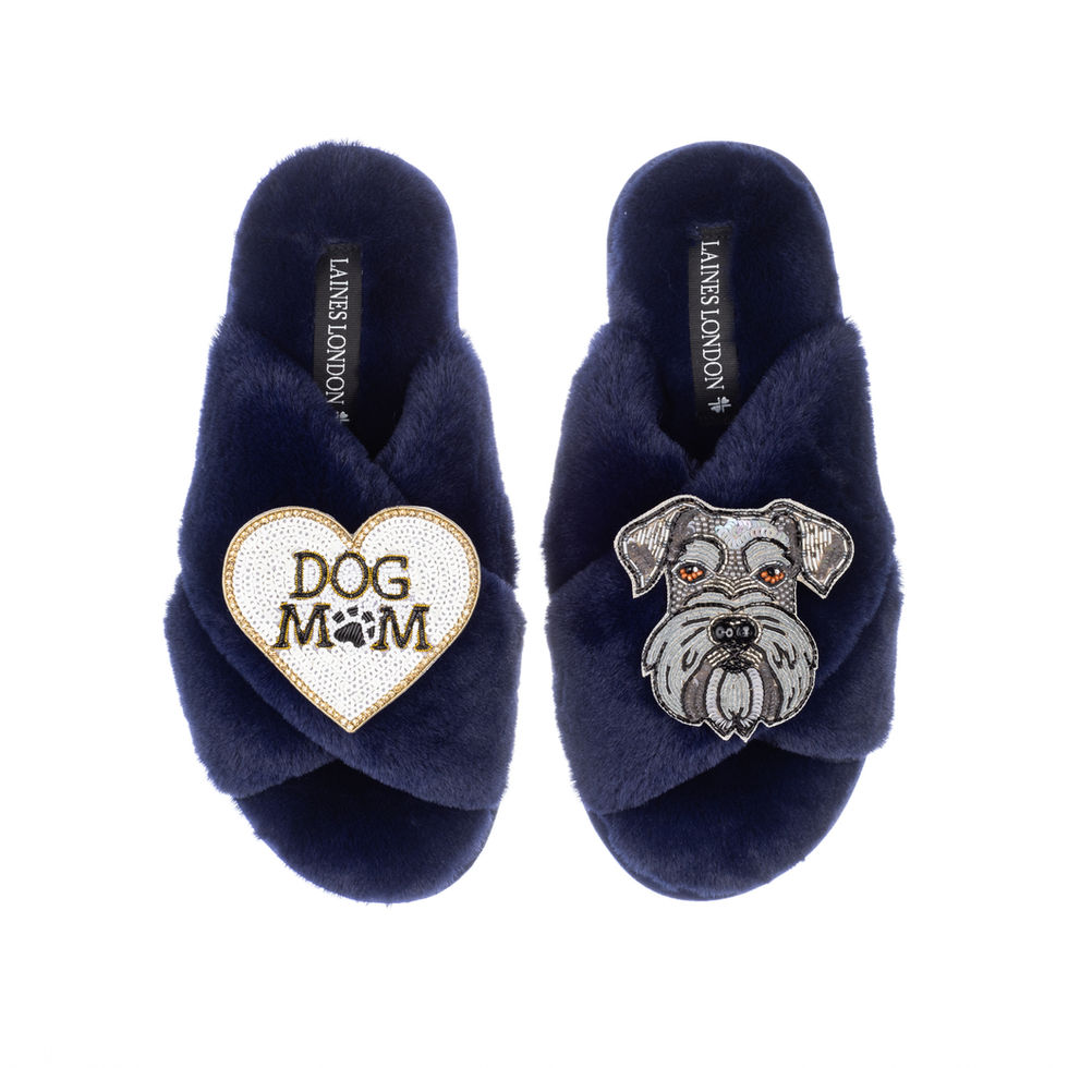 Classic Laines Slippers With Ernie The Schnauzer & Dog Mum / Mom Brooches