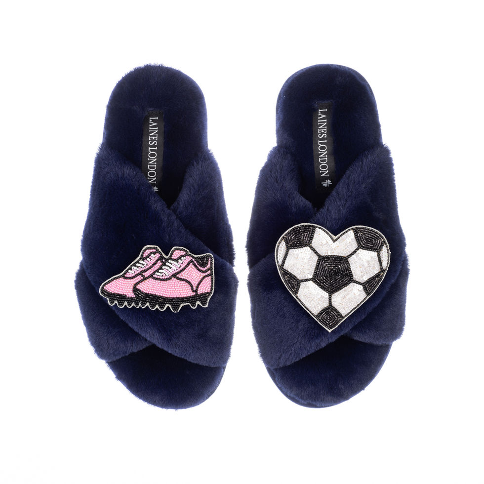 Classic Laines Slippers With Football / Soccer Lover Brooches