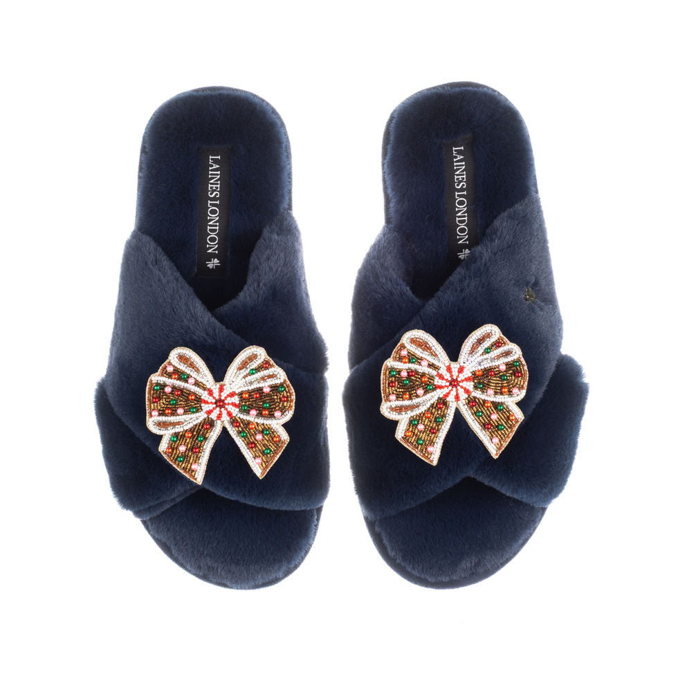 Classic Laines Slippers With Christmas Gingerbread Bows Brooches