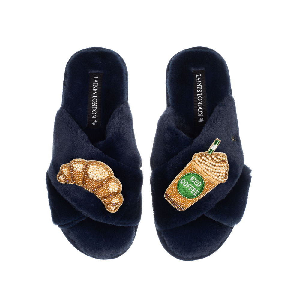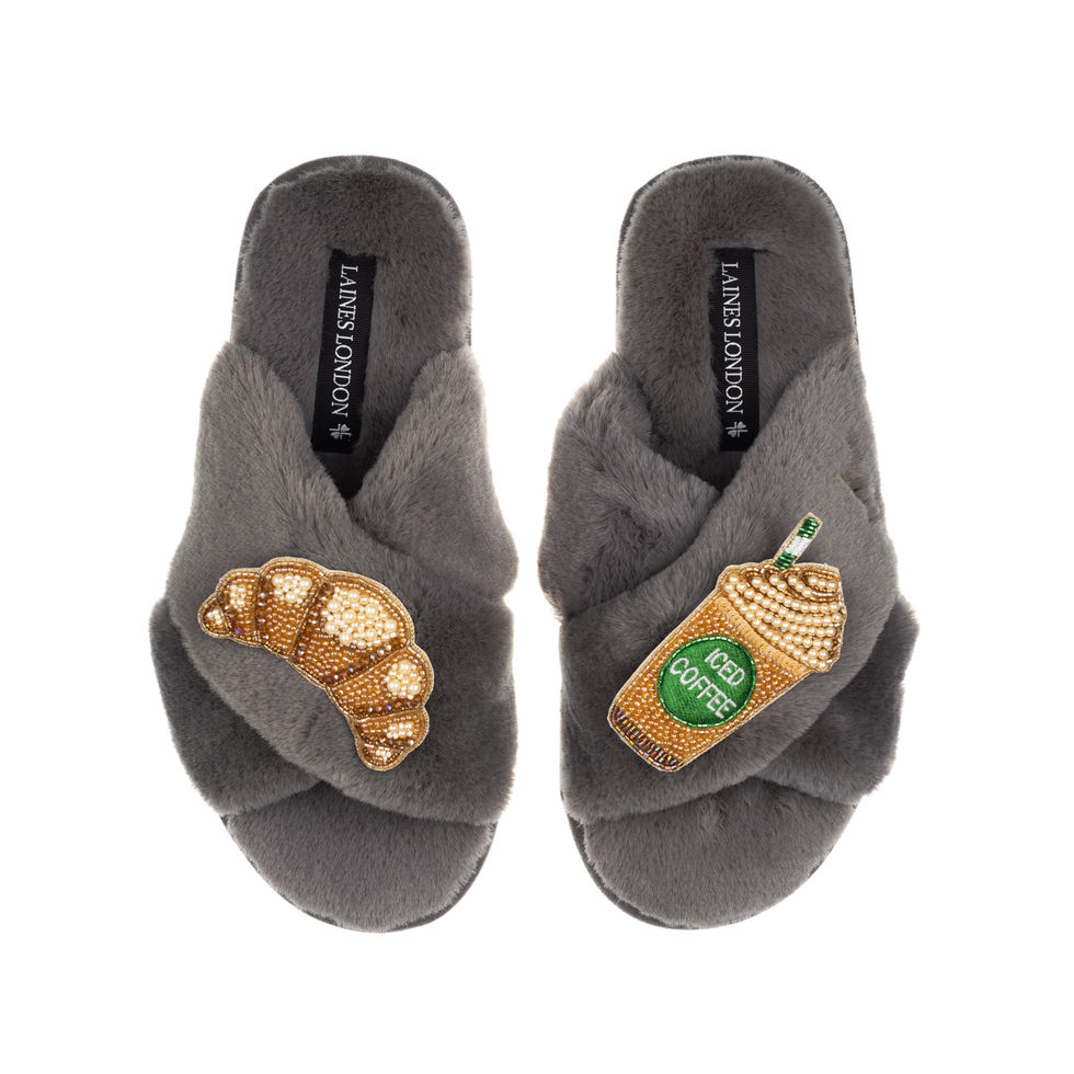 Classic Laines Slippers With Iced Coffee & Croissant Brooches