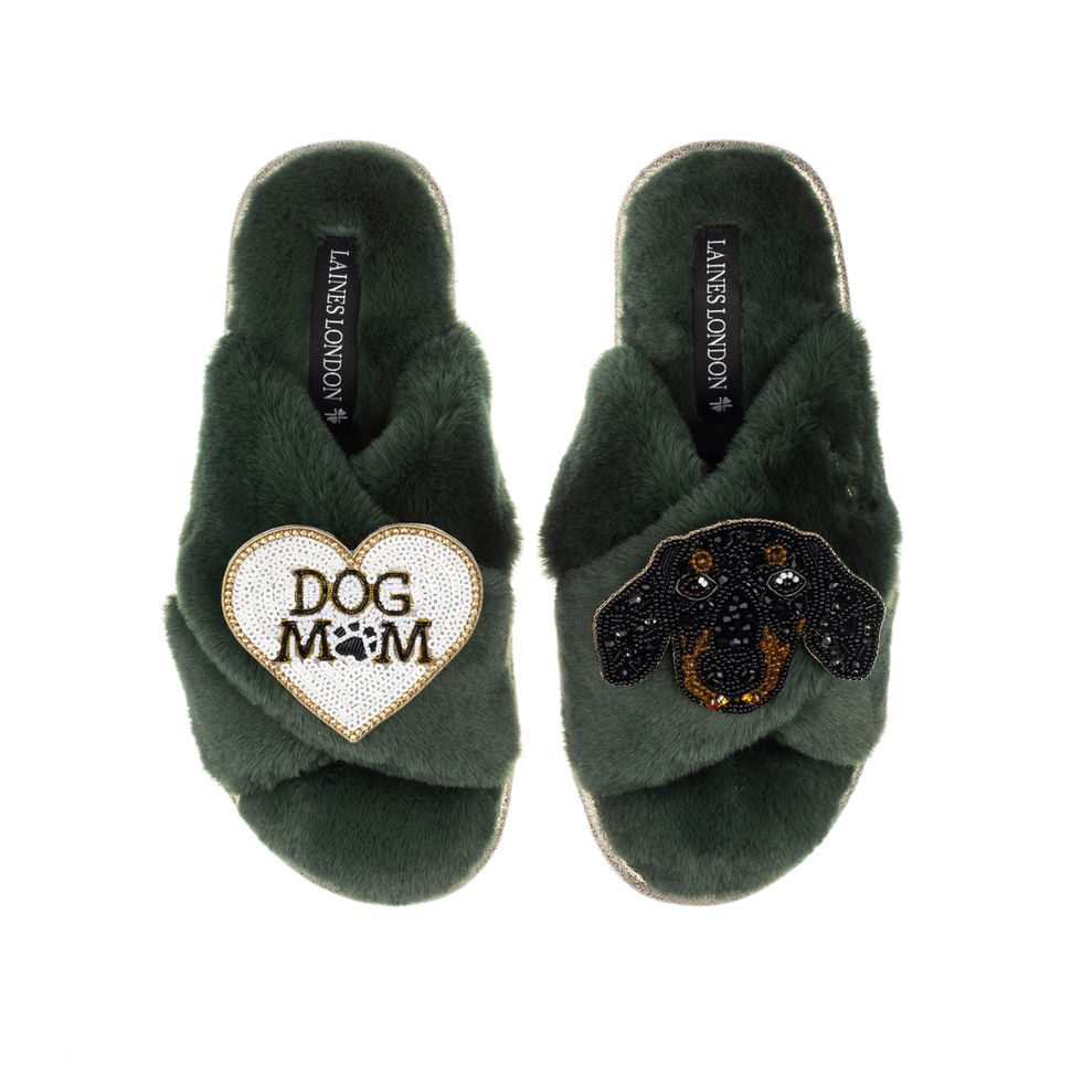 Classic Laines Slippers With Little Sausage & Dog Mum / Mom Brooches