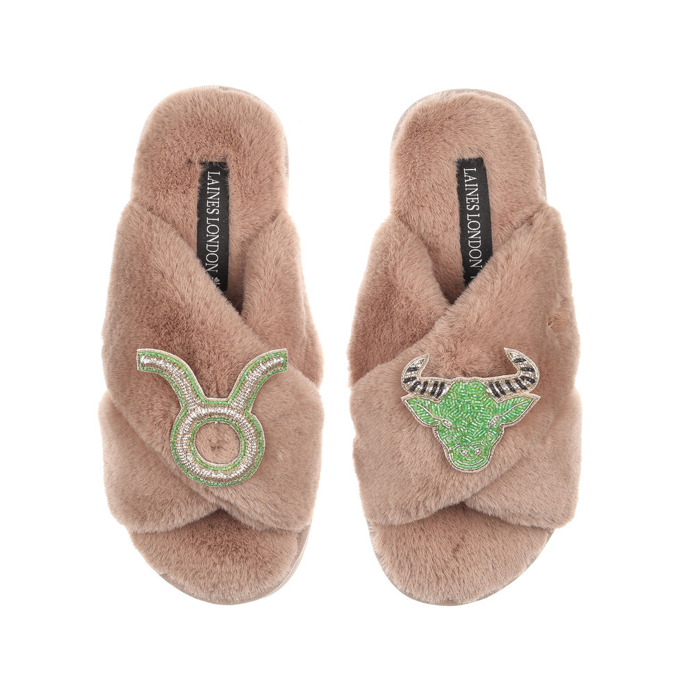Classic Laines Slippers With Taurus Star Sign Brooches