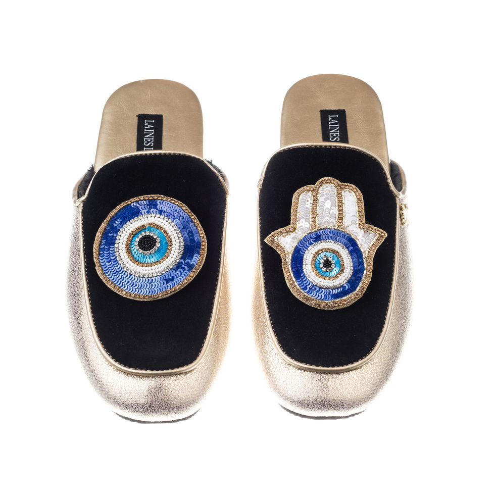 Classic Mules With Evil Eye & Hamsa Brooches
