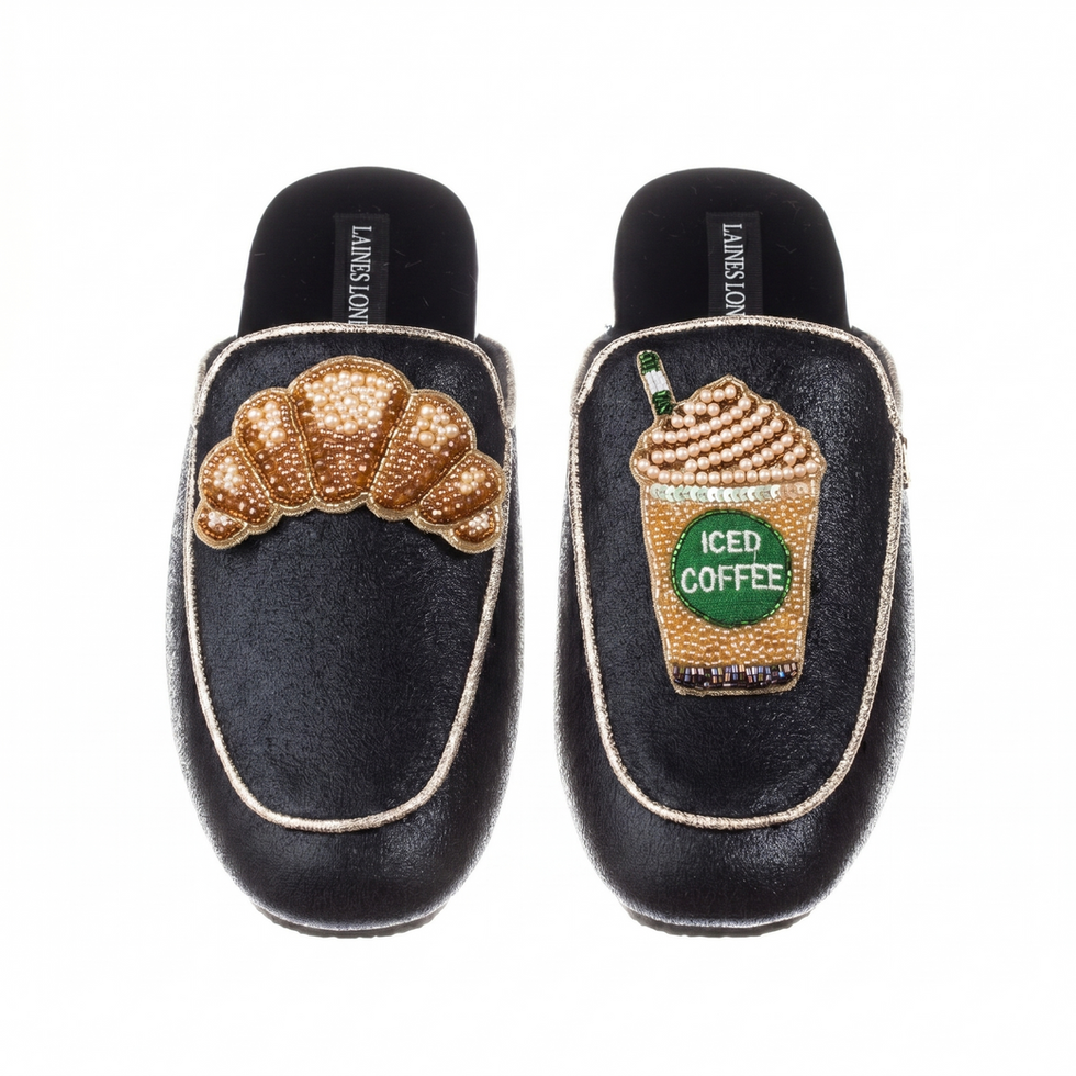 Indulge in ultimate luxury with Laines London, where sophistication meets comfort. Our classic mules are adorned with a handmade brooch, meticulously designed in-house and crafted by our skilled artisan team. Experience unparalleled comfort with a soft terry toweling fleece lining and a rubberized sole perfect for both indoor and outdoor use. Elevate your style with Laines London.