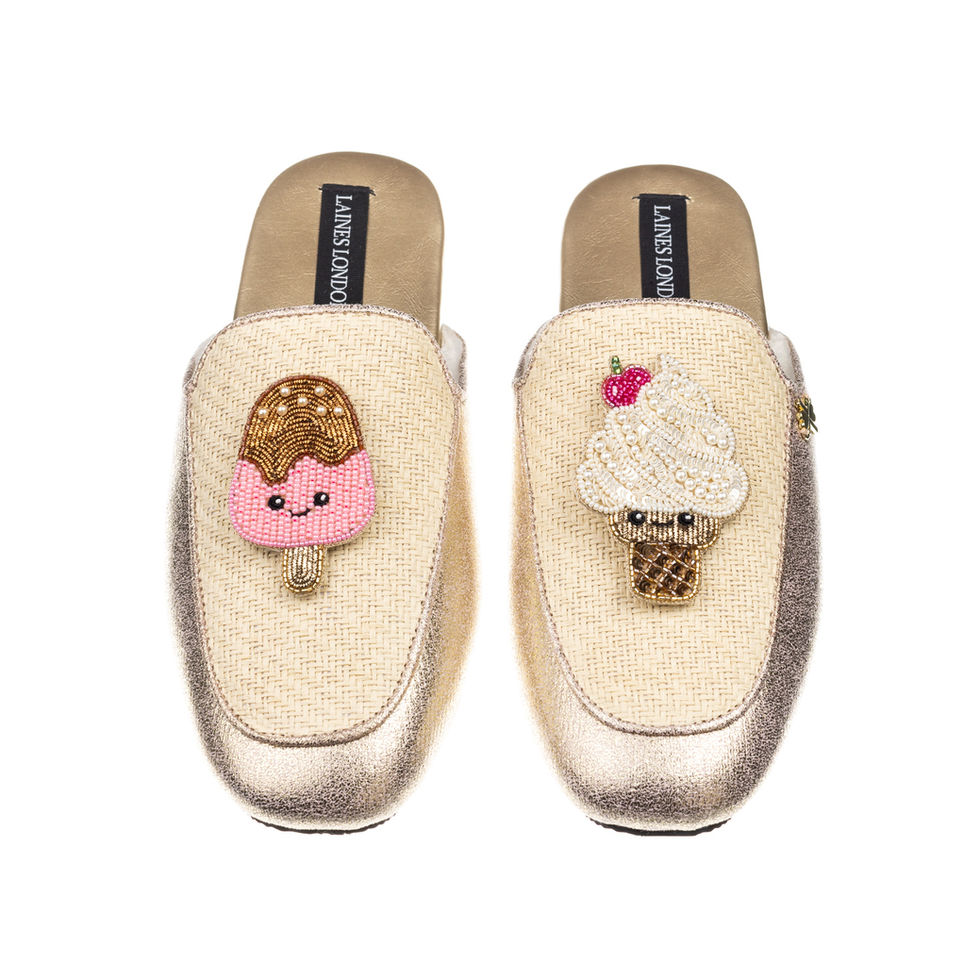 Classic Mules With Laines Lovables Ice Lolly & Ice Cream Brooches