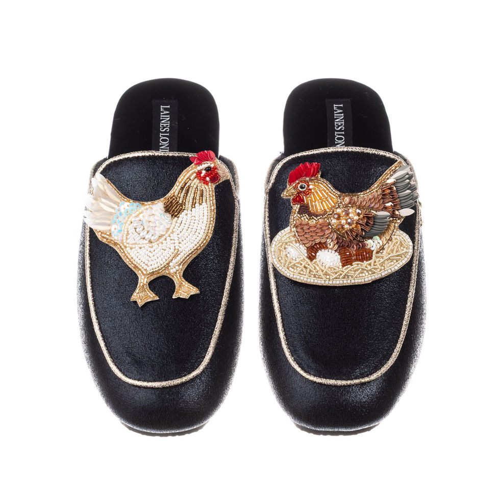 Classic Mules With Rooster & Hen Brooches