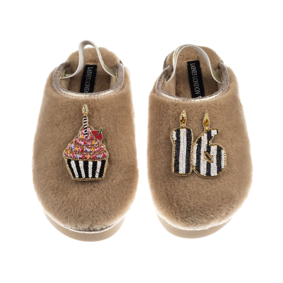 Flatform Cloud Slippers With 16th Birthday & Cake Brooches