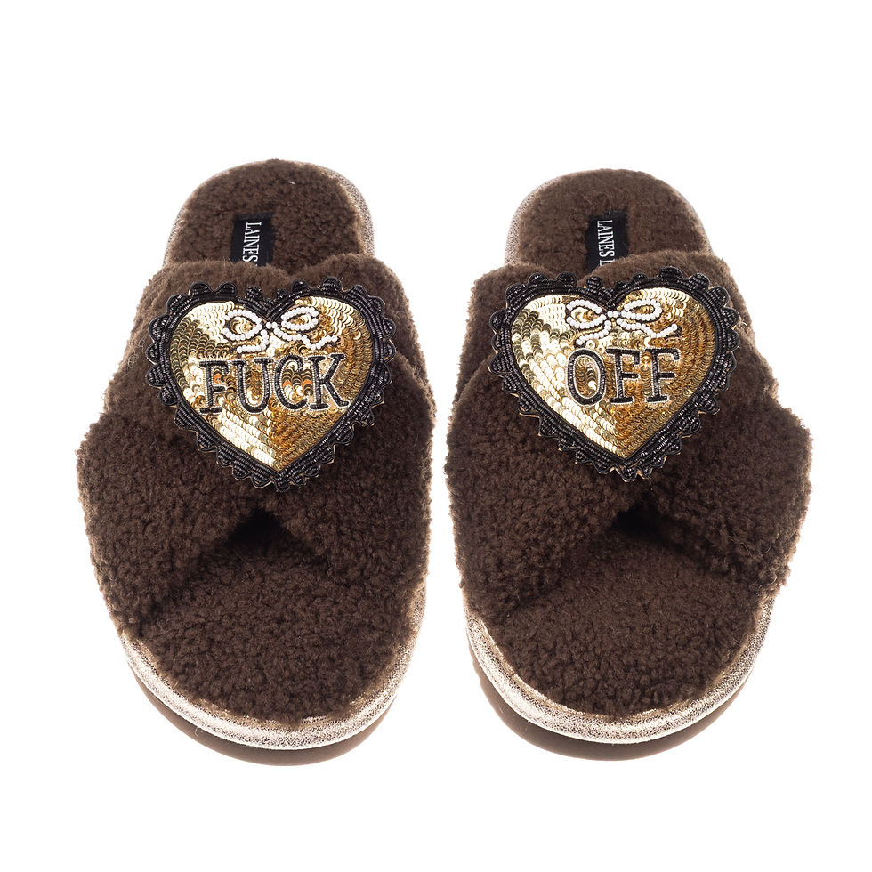 Flatform Cloud Slippers With Black & Gold Fuck Off Brooches