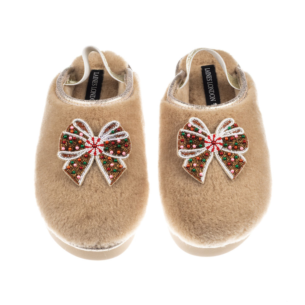 Flatform Cloud Slippers With Christmas Gingerbread Bows Brooches