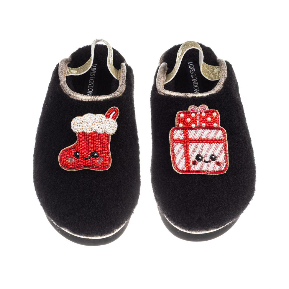 Flatform Cloud Slippers With Christmas Lovable Stocking & Gift Brooches