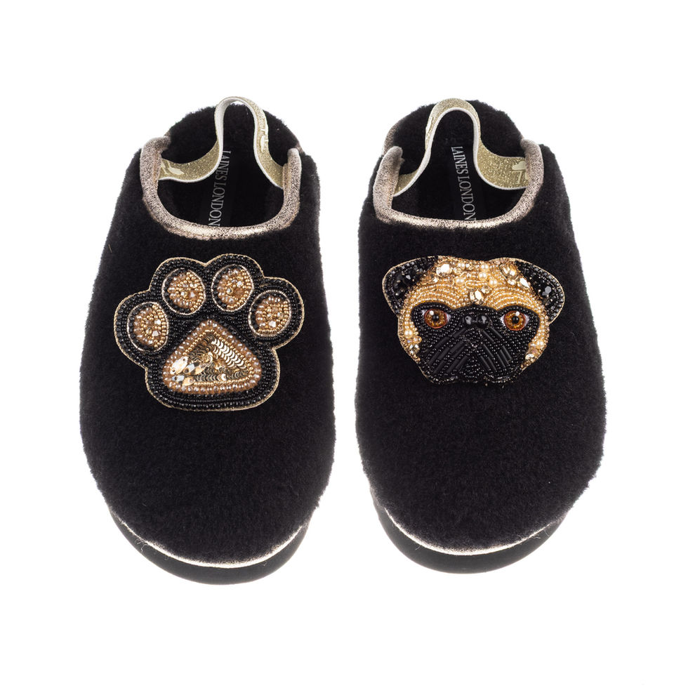 Flatform Cloud Slippers With Franki The Fawn Pug & Paw Brooches