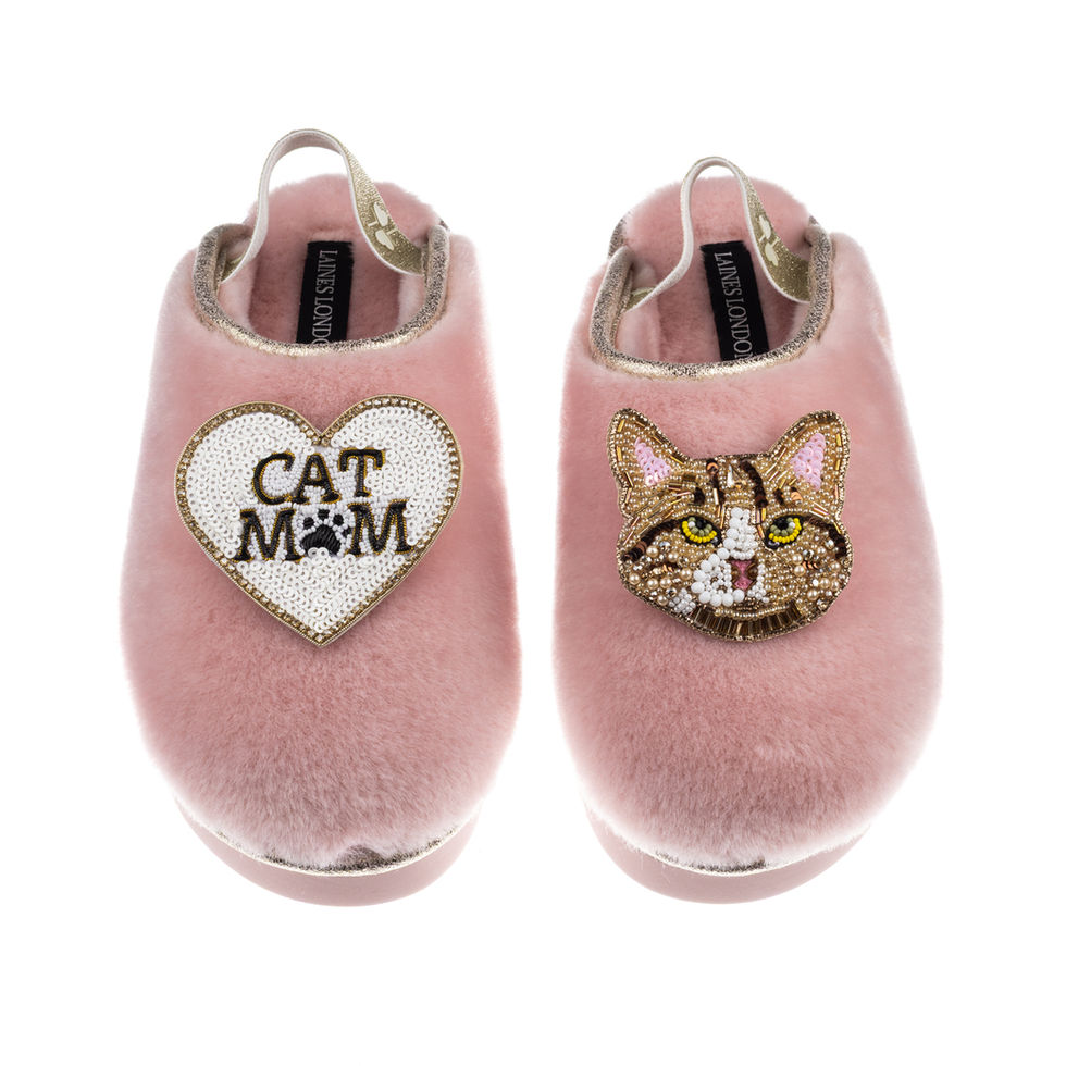 Flatform Cloud Slippers With Ginger Tabby Cat & Cat Mum / Mom Brooches