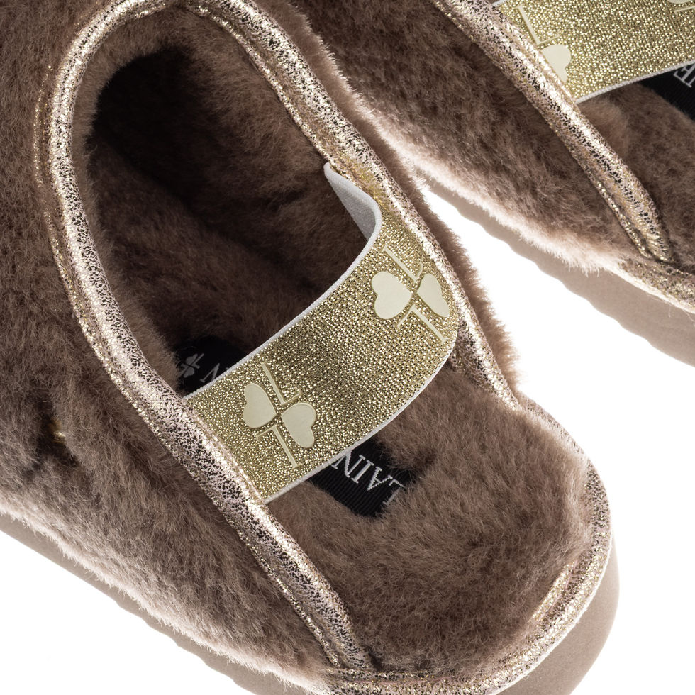 Even if you’re spending the night in, your footwear should stay as stylish as you are — and our Fluffy Flatform Cloud Slippers make sure of it. Designed with a cushioned flatform sole that feels as soft as walking on air and finished with a gold logo-detailed slingback strap, they deliver effortless comfort without compromising on style.