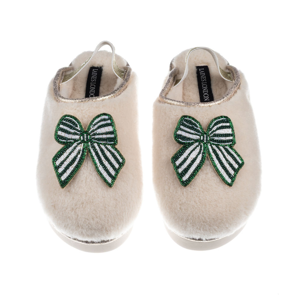 Flatform Cloud Slippers With Green Stripe Bow Brooches