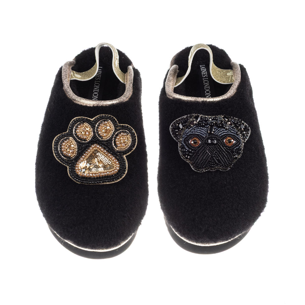 Flatform Cloud Slippers With Snoops The Black Pug & Paw Brooches