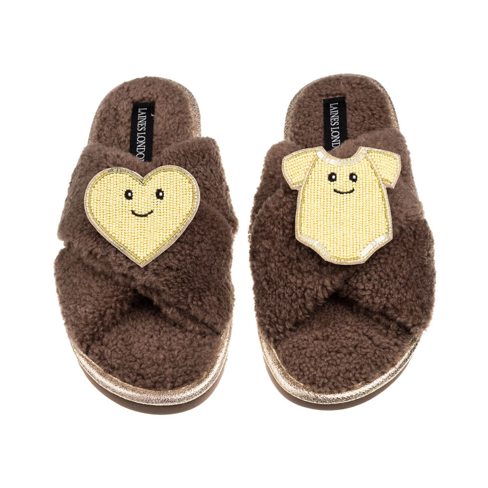 Laines Boucle Slippers With Laines Lovables Yellow Love & Baby Grow Brooches