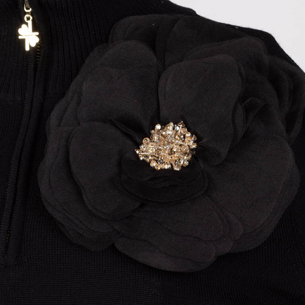 Laines Couture Black Quarter Zip Jumper With Embellished Black Corsage