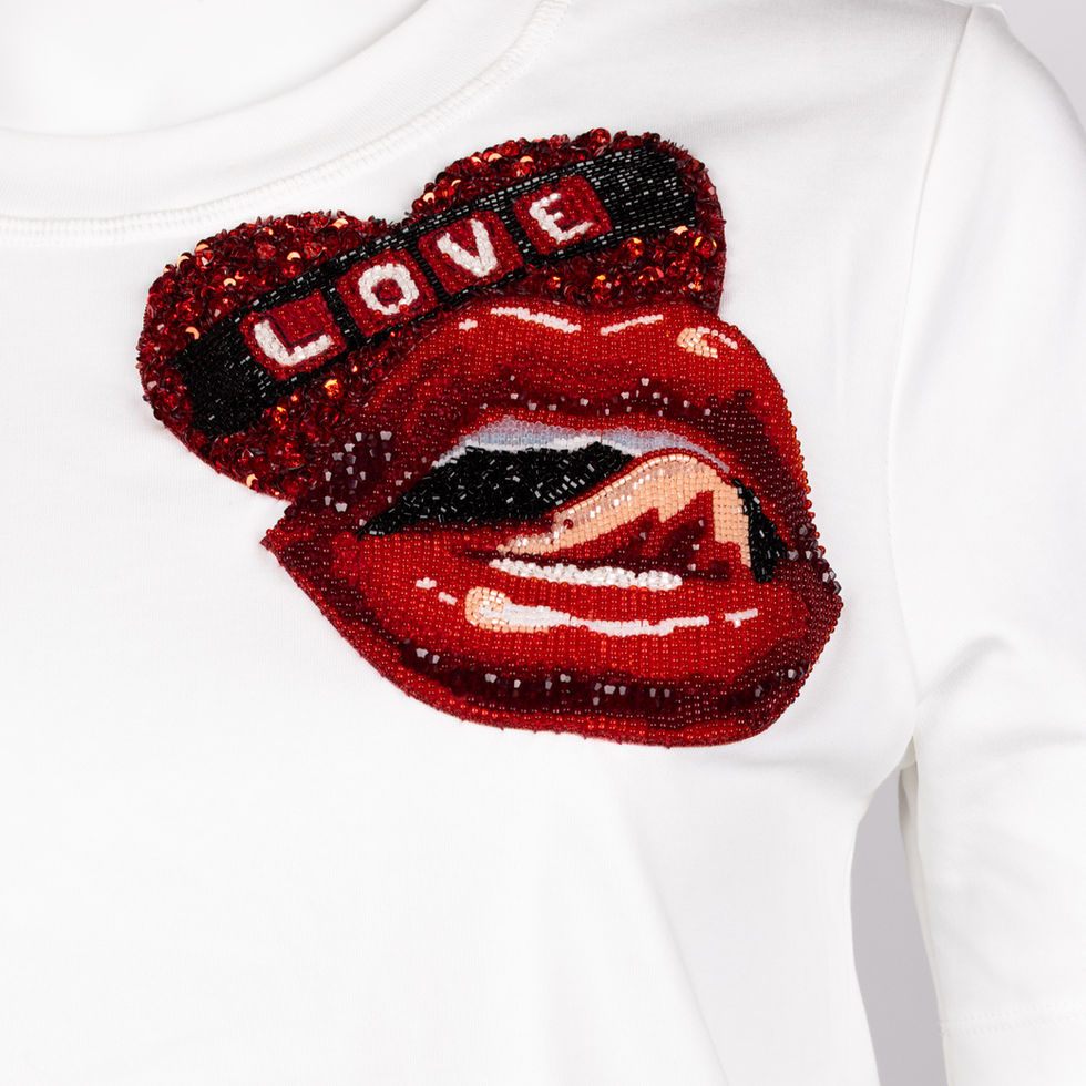 Turn up the volume on your everyday look with the bold elegance of the Laines London ‘Love Lips’ T-Shirt. Crafted in the UK from 100% premium cotton, this couture-inspired piece is elevated with a hand-embellished patch featuring a striking red lip design, shimmering with high-quality beads and sequins. The sequin-encrusted motif spells out "LOVE" with rock ‘n’ roll edge, offering a rebellious twist to luxury fashion.