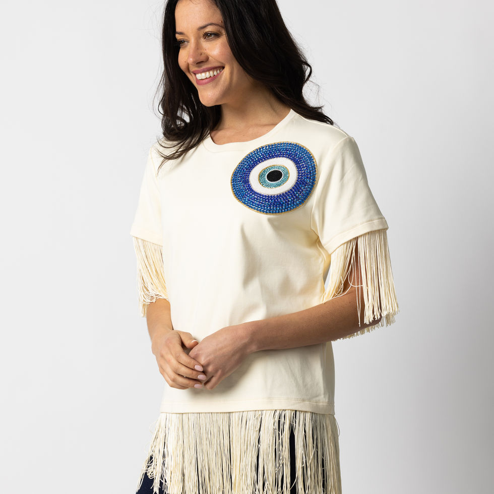 Laines Couture Fringed Tassel T-Shirt With Embellished Evil Eye