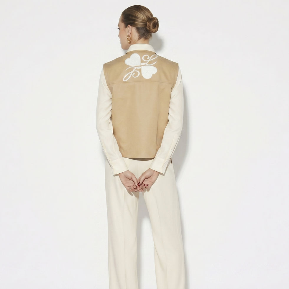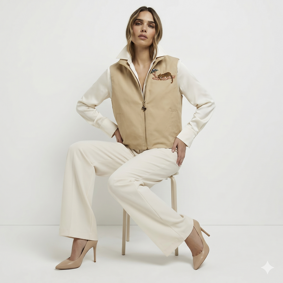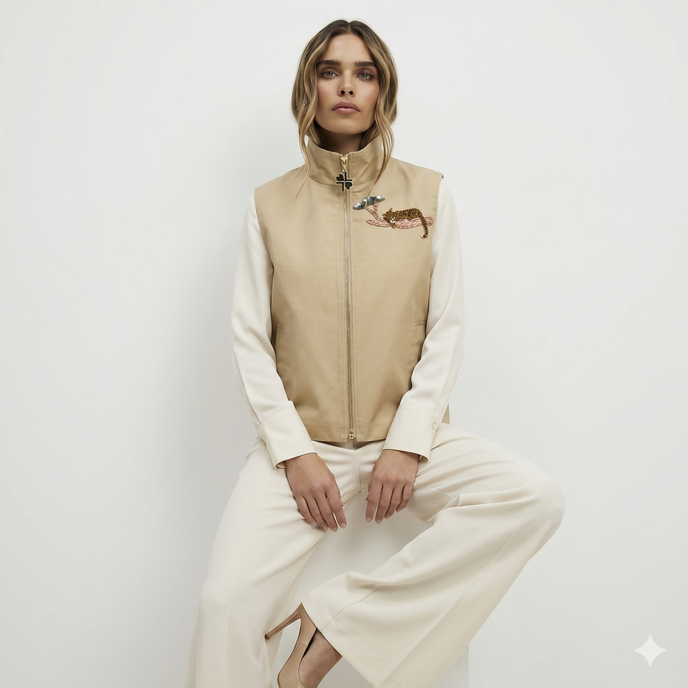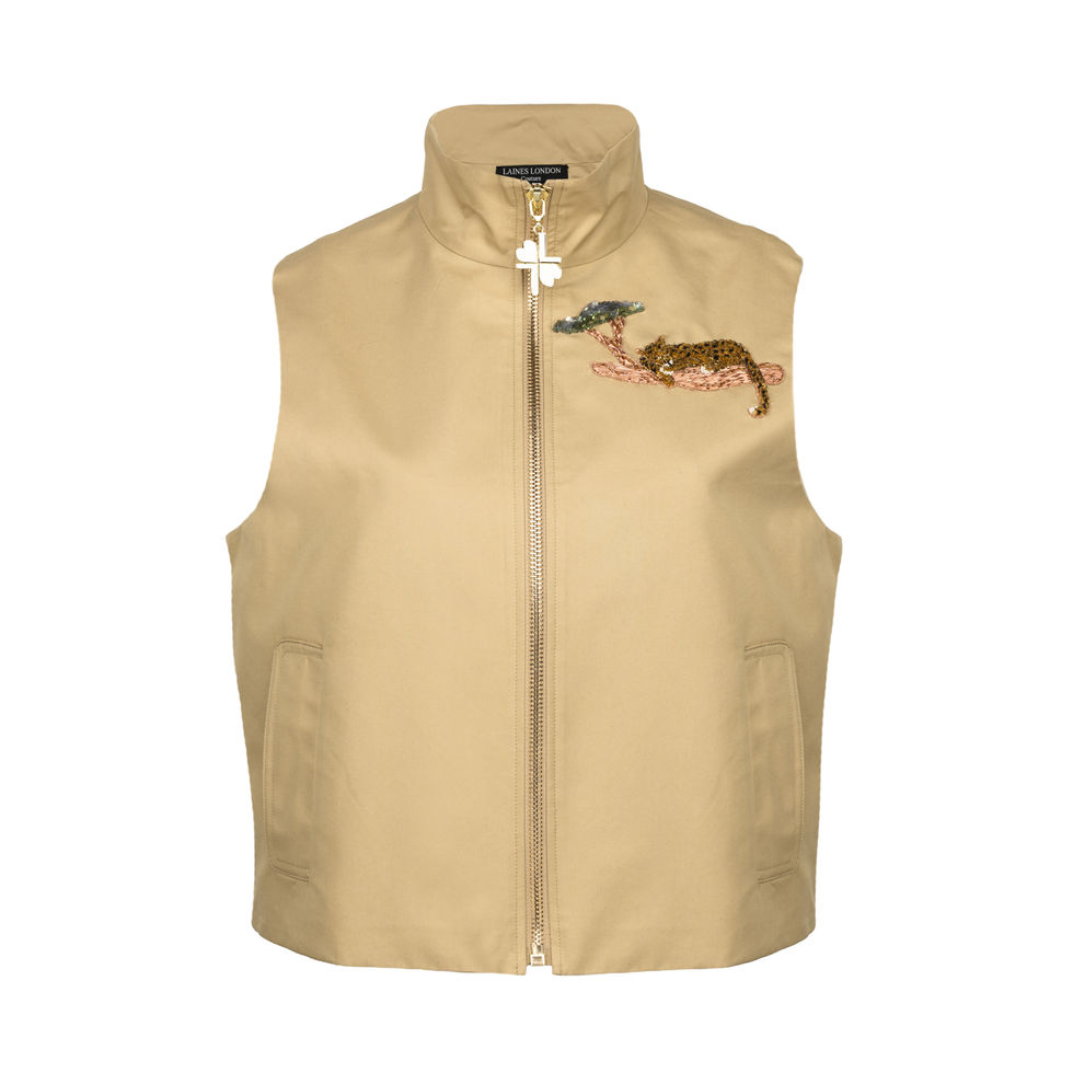 Elevate your outerwear game with this impeccably tailored Beige Harrington-style sleeveless jacket from Laines London. Blending classic British heritage silhouettes with the brand's signature whimsical flair, this piece is designed for those who want their wardrobe to tell a story.