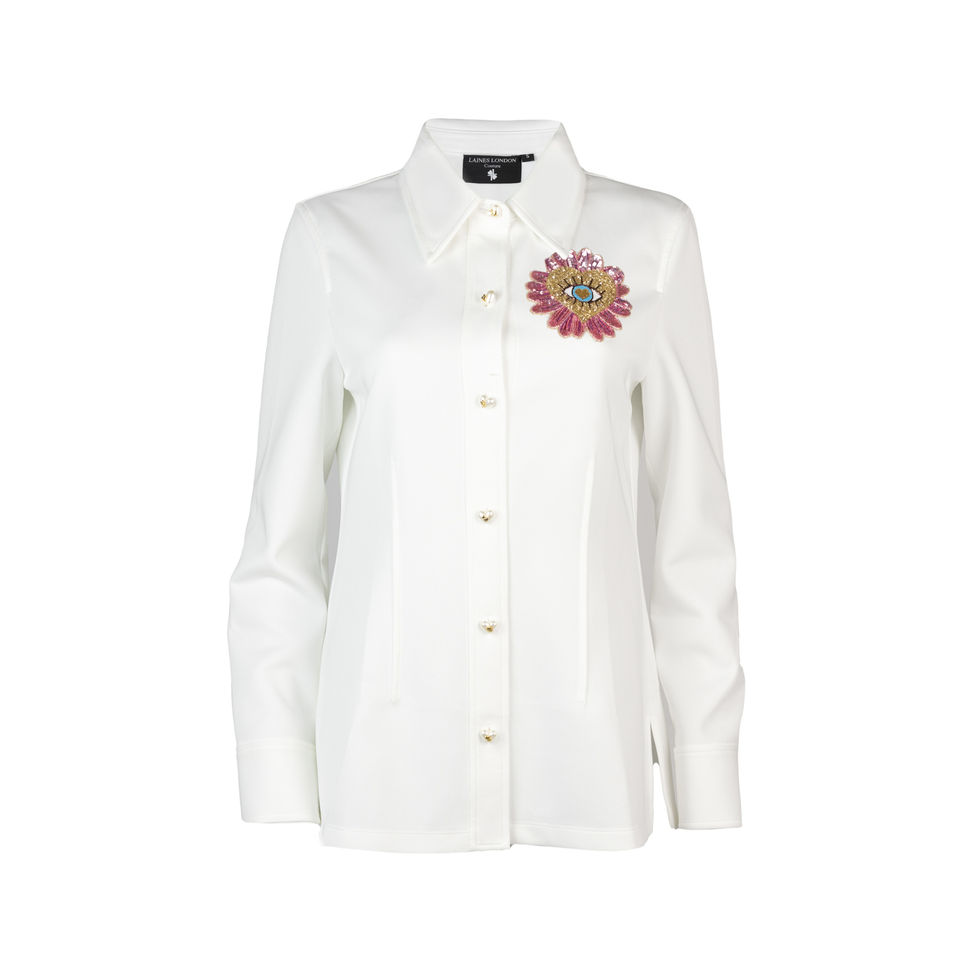 Laines Couture Shirt With Embellished Pink Eye Flower Shirt