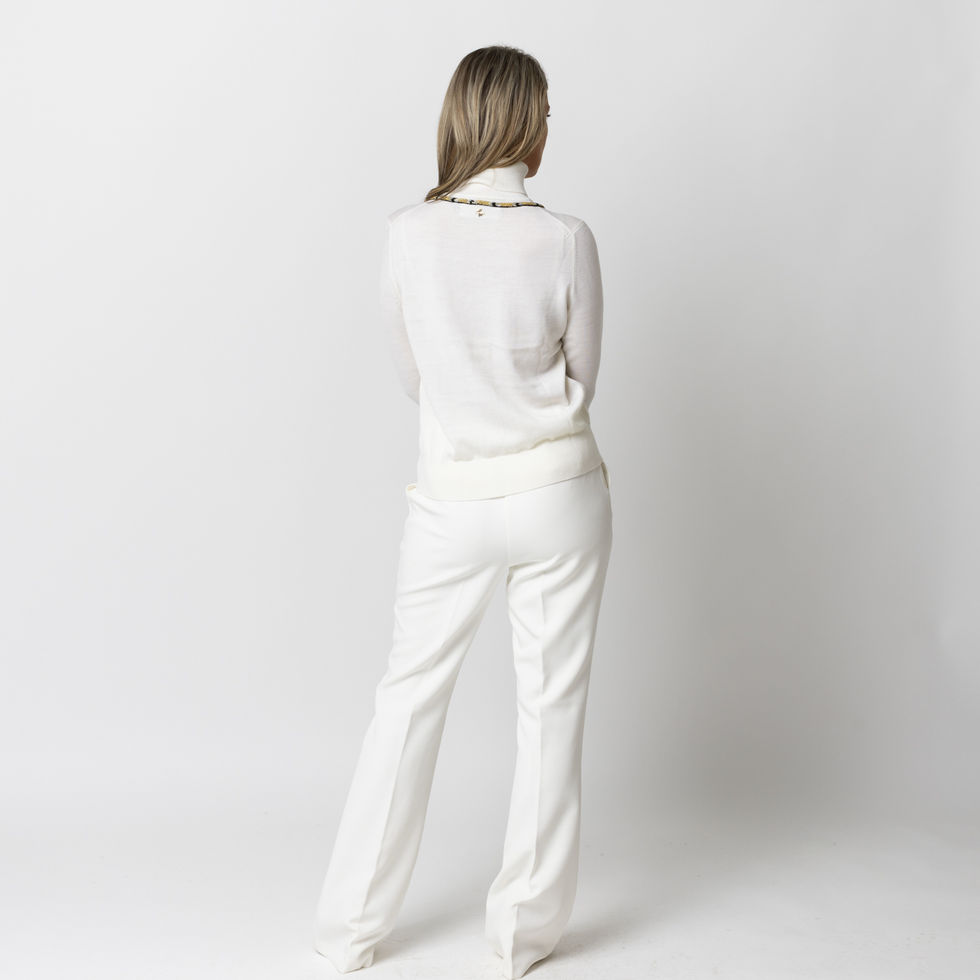 Laines Couture Wrap Gold Snake Embellished Knitted Roll Neck Jumper - Cream