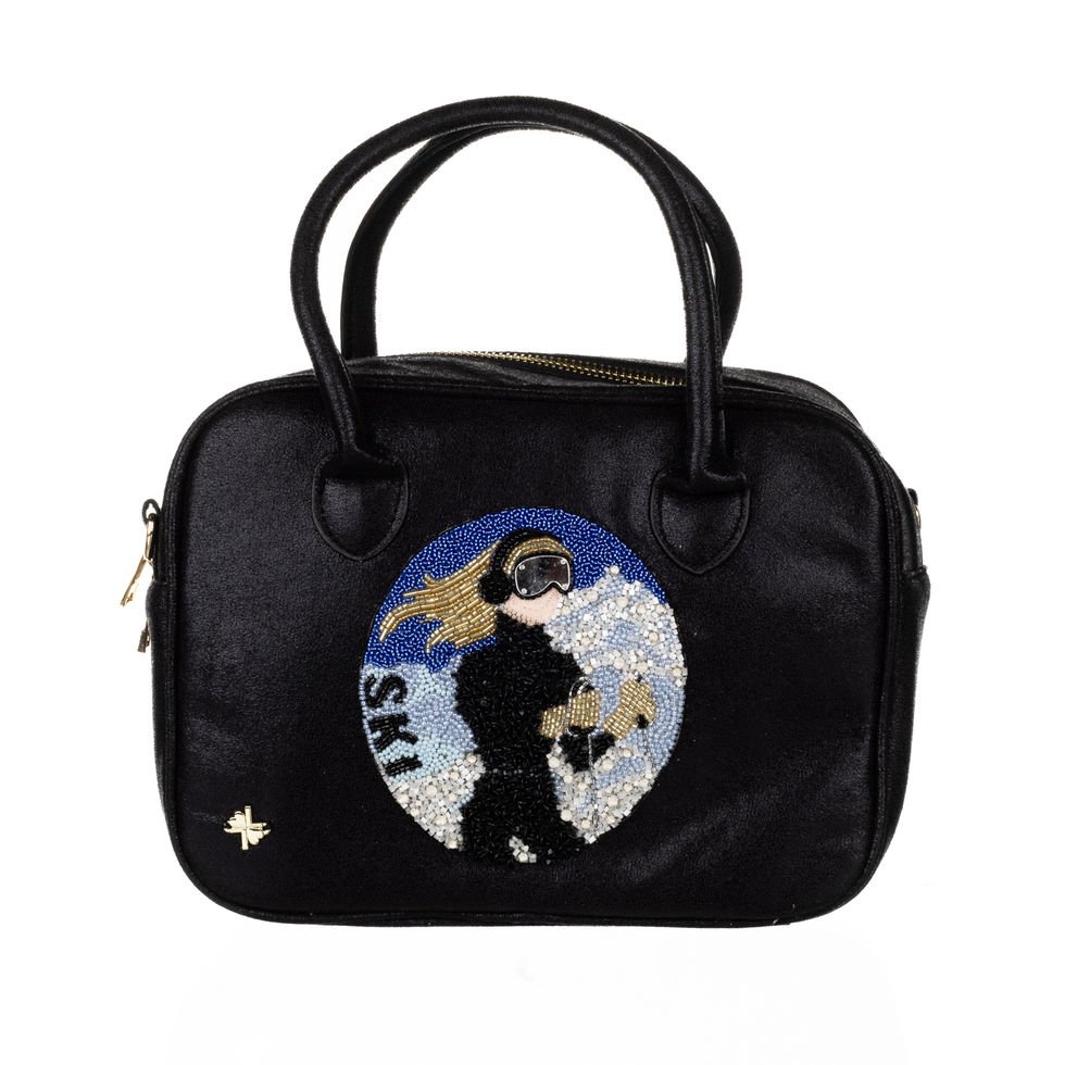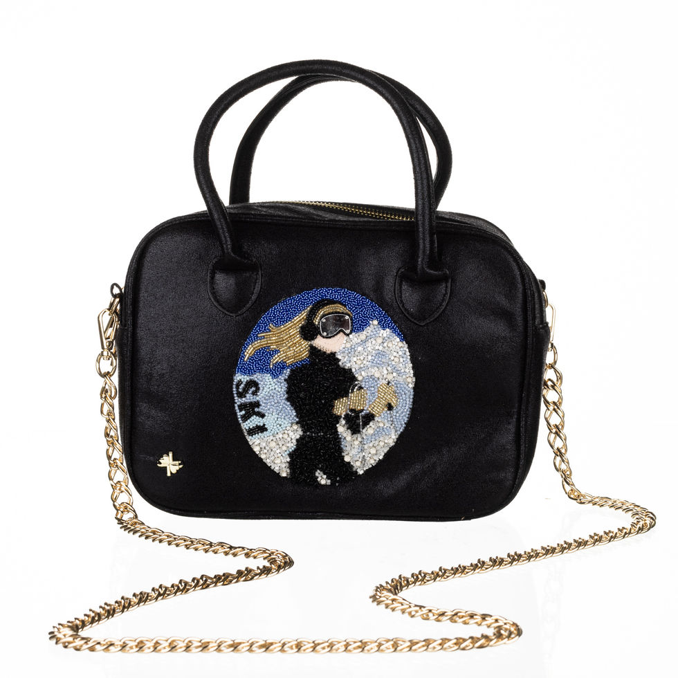 Laines London Couture Black Metallic Bag With Embellished Ski Girl