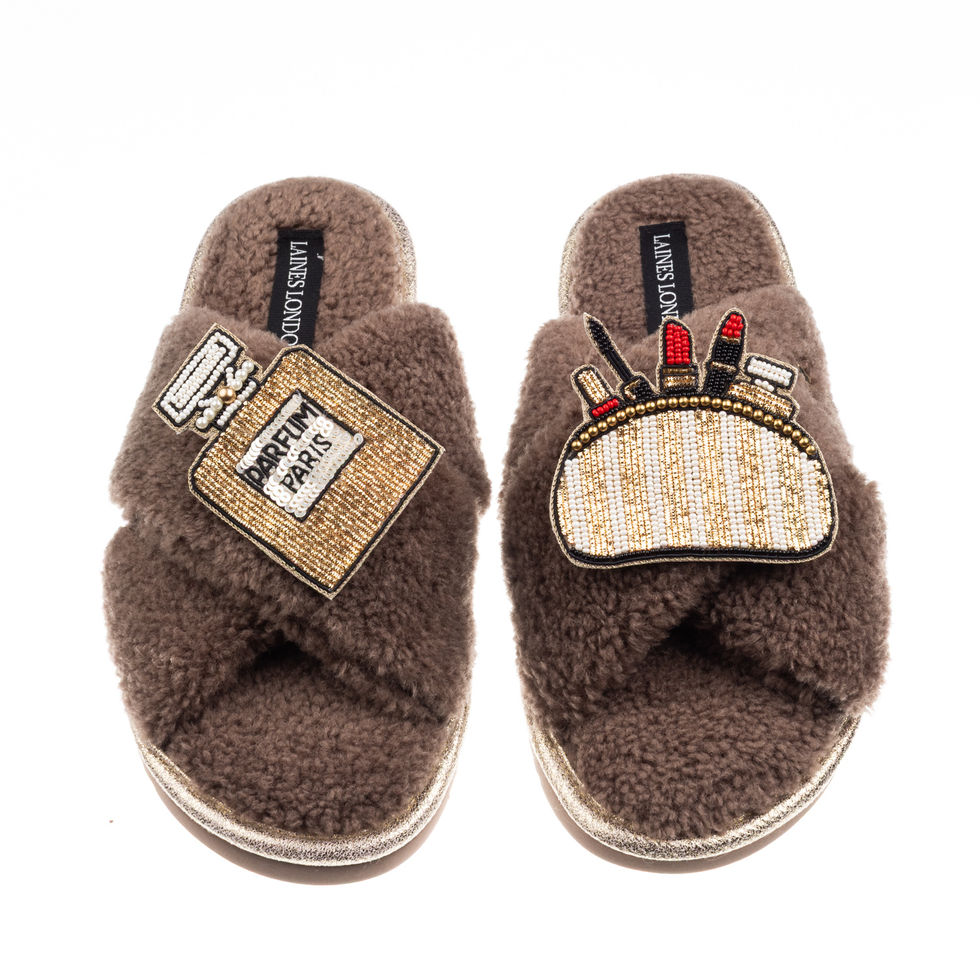 Laines Neutral Boucle Slippers With Beauty Queen Brooches