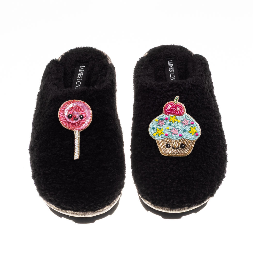 Teddy Closed Toe Slippers With Laines Lovables Lollipop & Cupcake Brooches